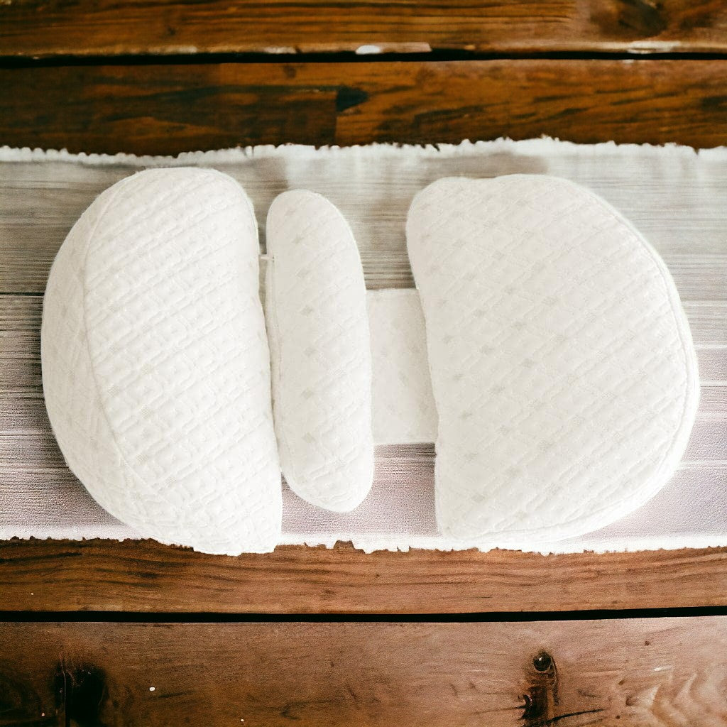 Our pillow's unique design is easily adjustable to provide optimal support throughout your entire pregnancy. As your belly grows, simply increase the width between the pillows using the velcro attachment to maintain perfect comfort and support.
