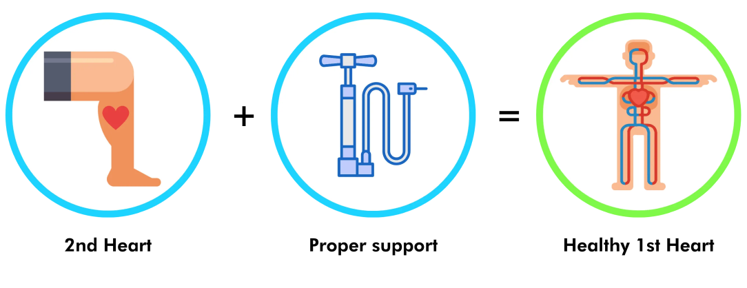 As the blood reaches the second heart, it effortlessly pumps back to the first heart, supporting healthy circulation and reducing swelling.