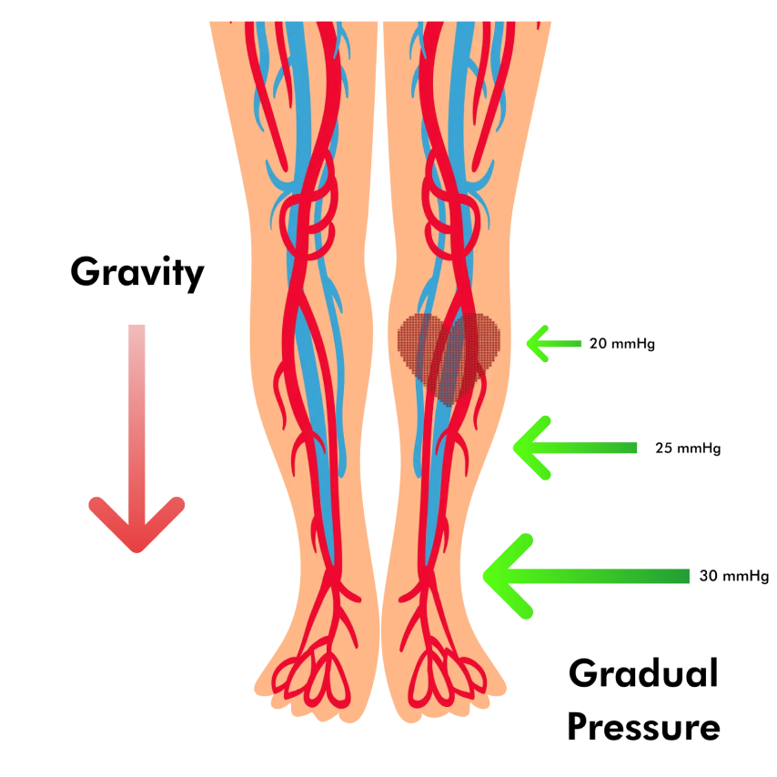 We designed our socks with 30 mmHg of pressure at the ankle, gradually decreasing to 20 mmHg at the calf. This means there’s more pressure further from the heart, guiding blood flow upwards.